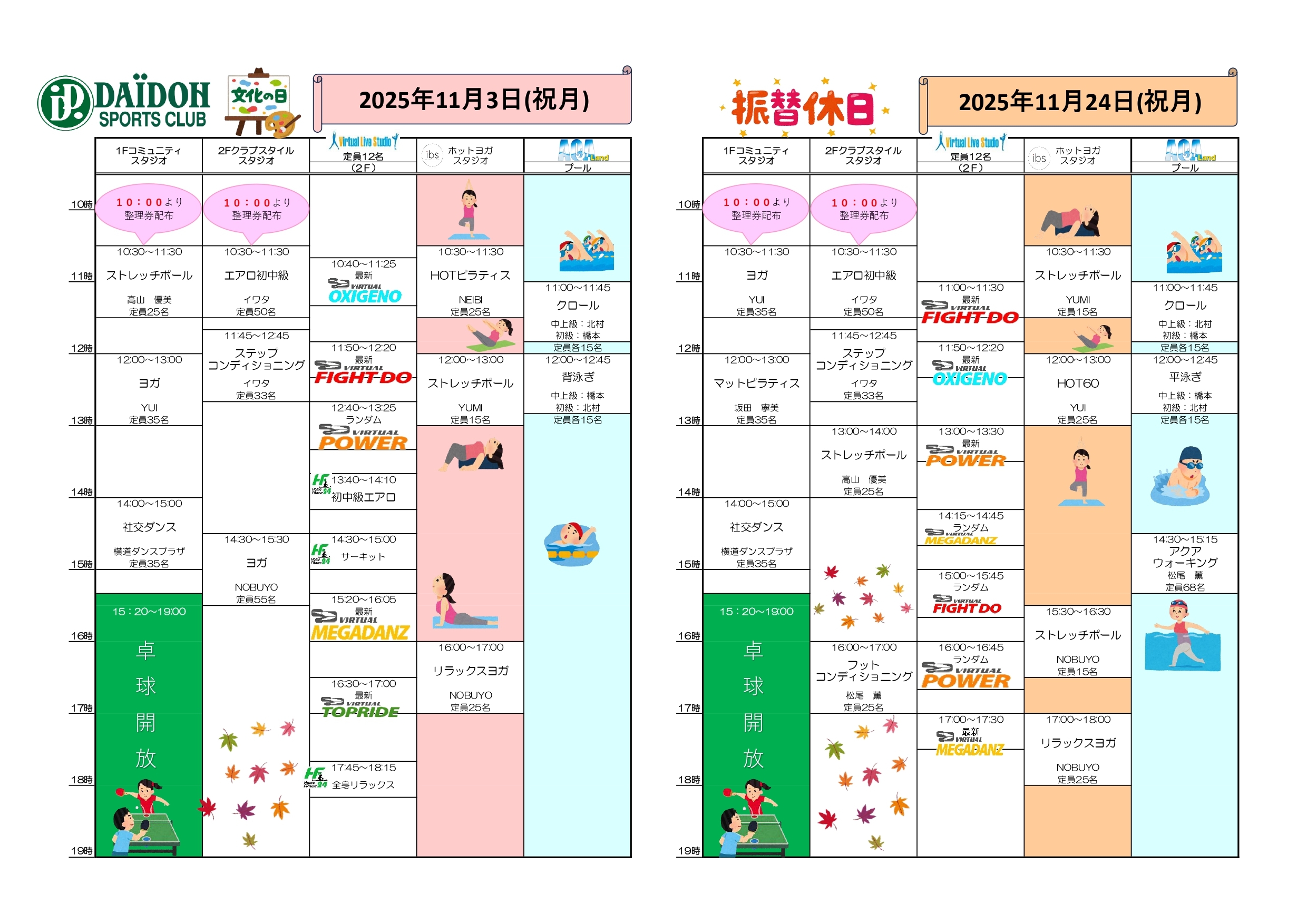【DSC 2025年11月3日(月)・11月24日(月)祝日特別プログラムのご案内】