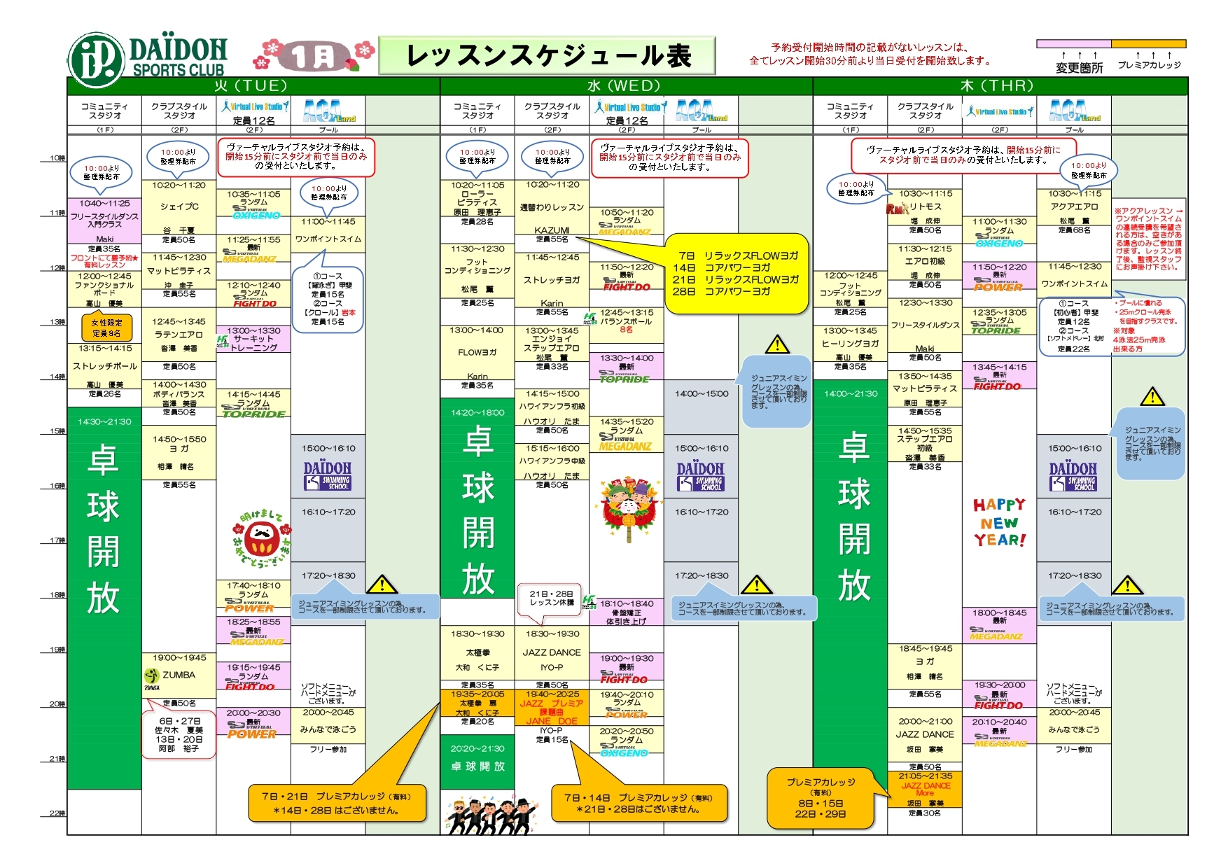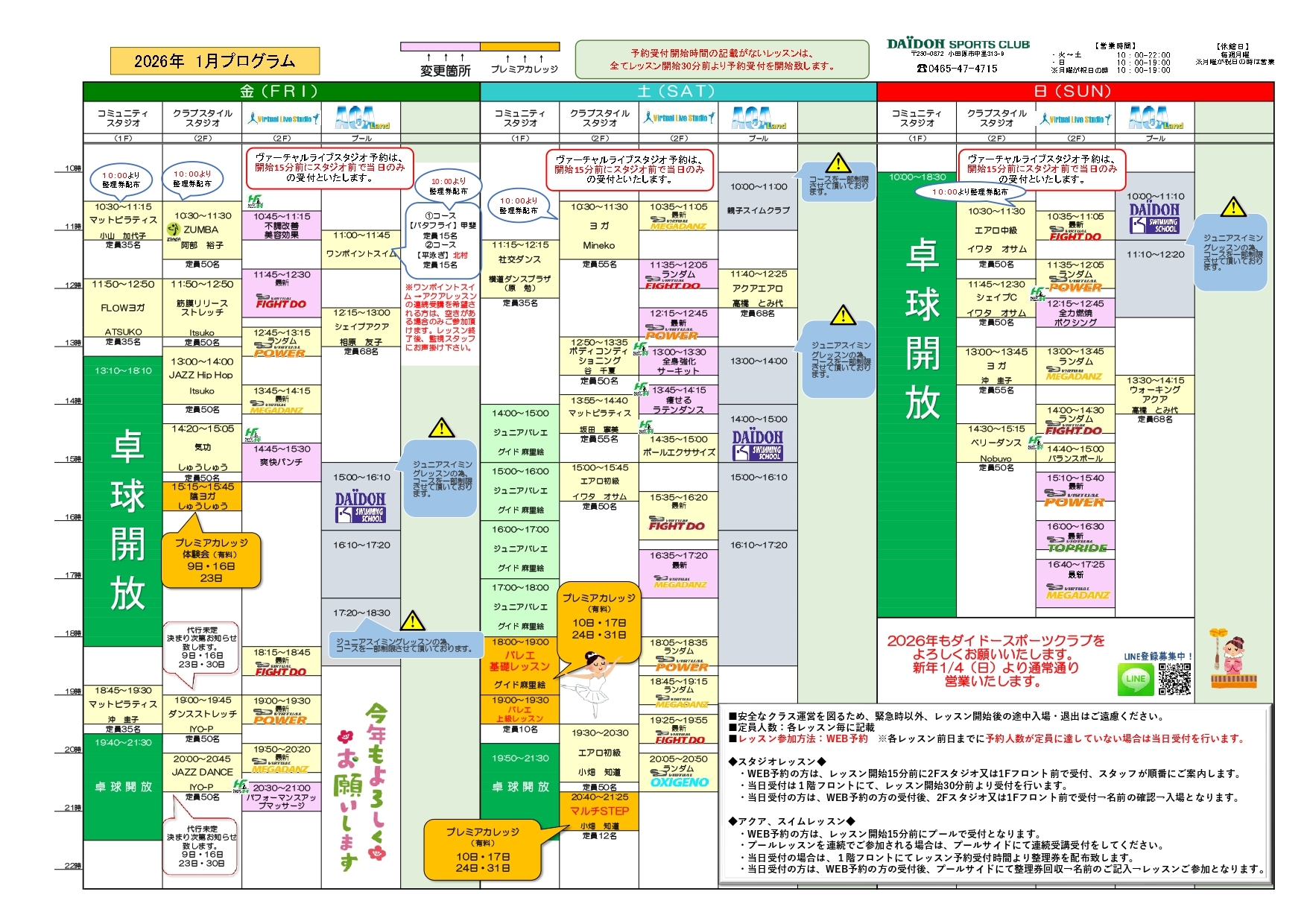 2026年1月のレッスンプログラムのご案内をいたします。
